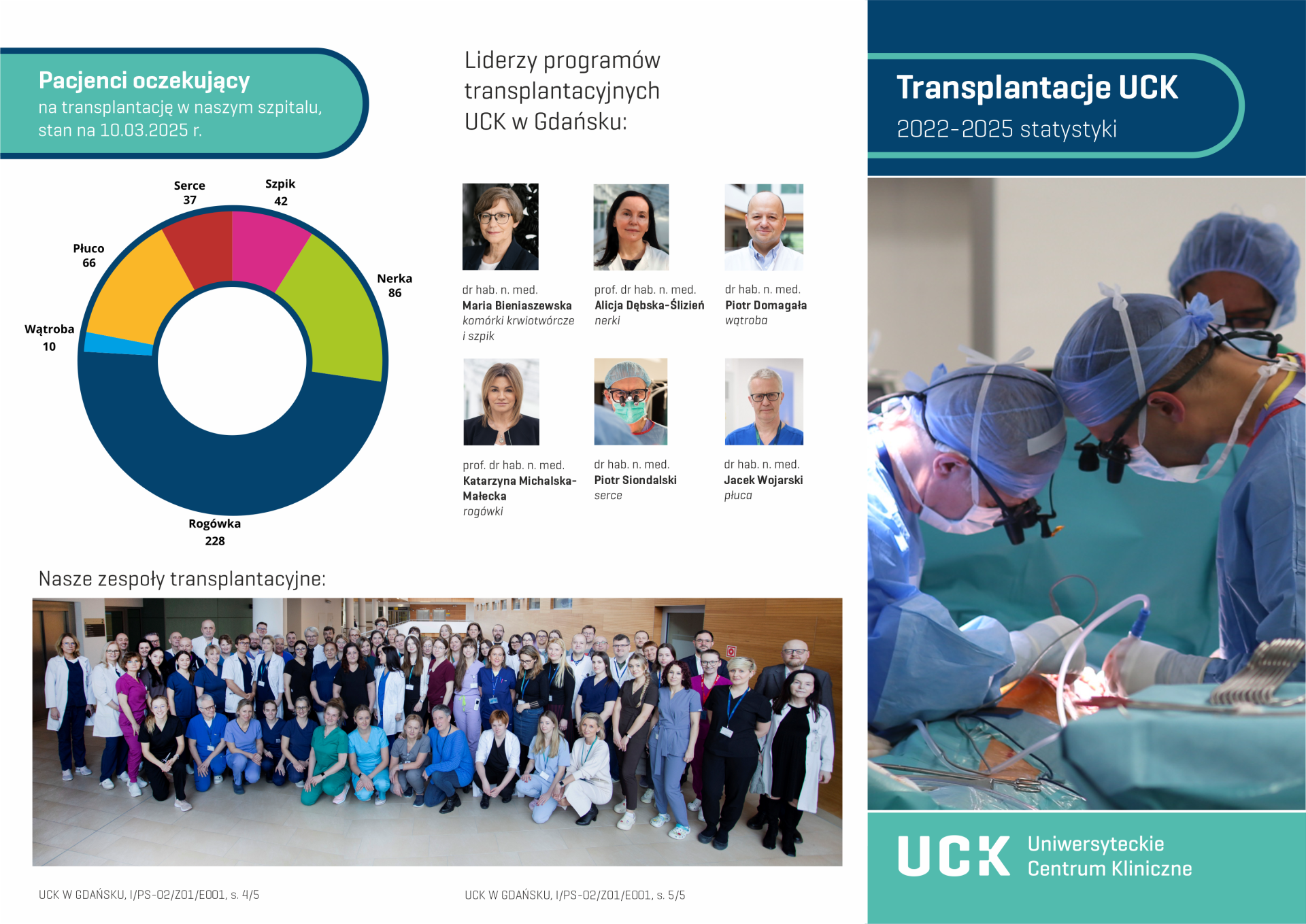 W 2024 roku w UCK wykonano 504 transplantacje. Przeszczepiono: 17 serc, 50 płuc, 78 wątrób, 129 nerek, 159 szpików oraz 71 rogówek.