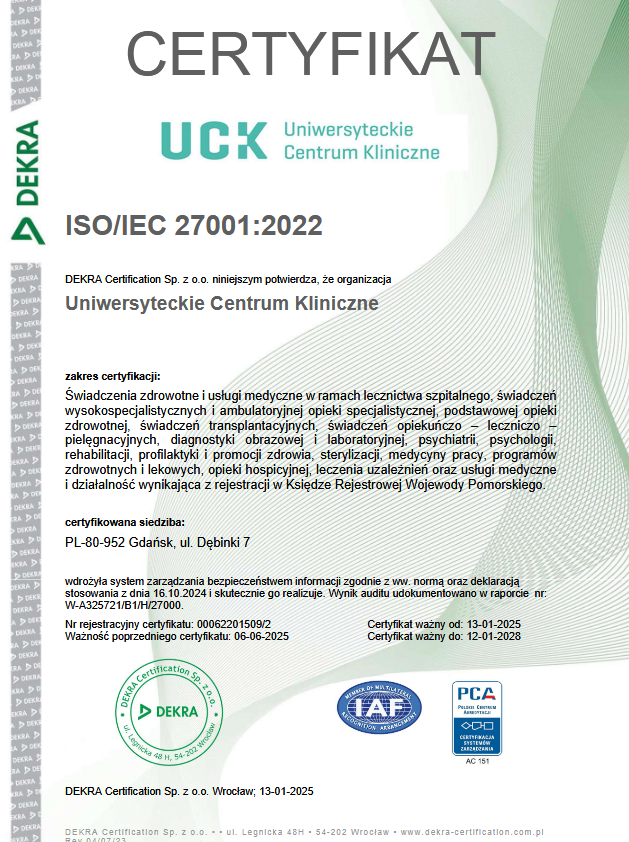 Podejmowane przez UCK w tym obszarze działania, w tym identyfikacja ryzyka, jego ocena oraz dążenie do jego minimalizacji, mają na celu zapewnienie skutecznej ochrony przed narażeniem powierzonych danych na utratę lub niepożądane upowszechnienie.