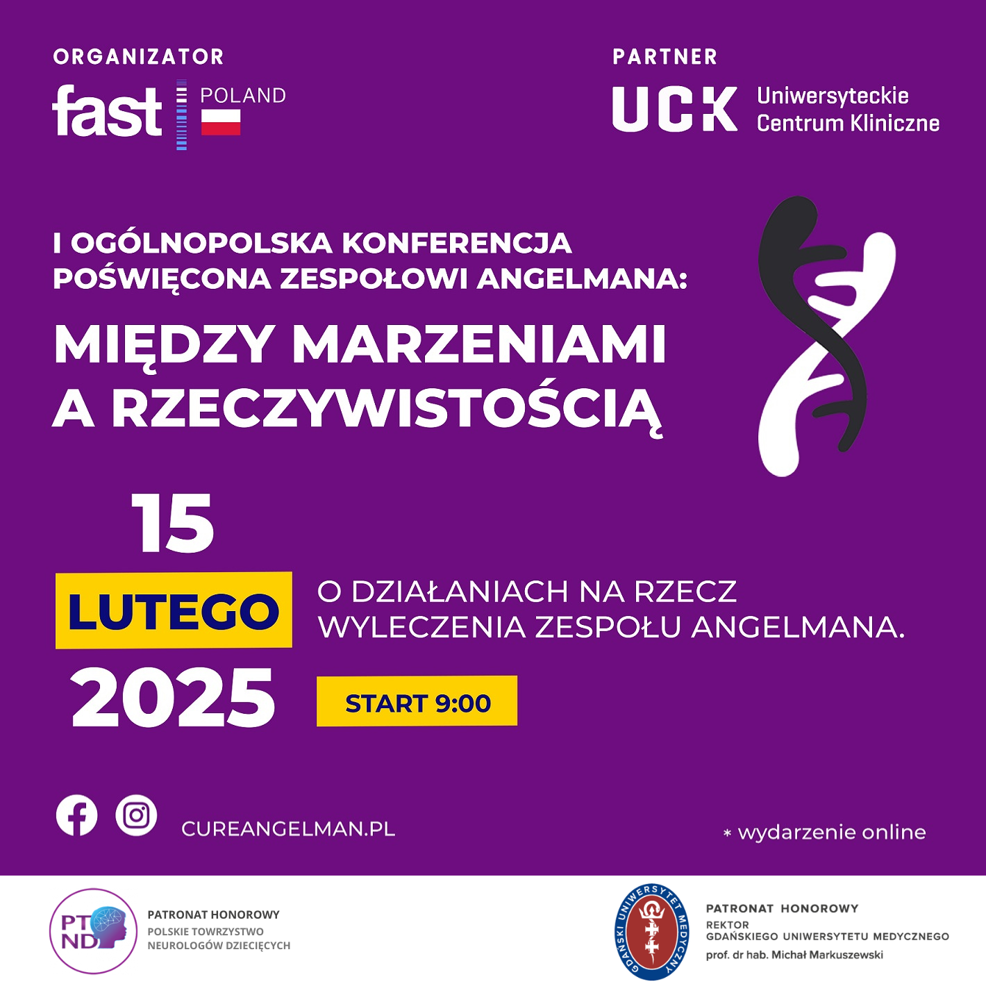 W tym roku, by uczcić ten dzień odbędzie się I Ogólnopolska Konferencja poświęcona zespołowi Angelmana: Między marzeniami a rzeczywistością. Głównym organizatorem konferencji jest FAST Poland a partnerem Uniwersyteckie Centrum Kliniczne w Gdańsku. Polskie Towarzystwo Neurologów Dziecięcych, a także Rektor Gdańskiego Uniwersytetu Medycznego prof. dr hab. Michał Markuszewski objęli konferencję patronatem honorowym. Zapraszamy do zapoznania się z programem konferencji na https://www.cureangelman.pl/konferencja-zespol-angelmana/. Jest to okazja do podniesienia wiedzy i świadomości na temat tego zaburzenia.