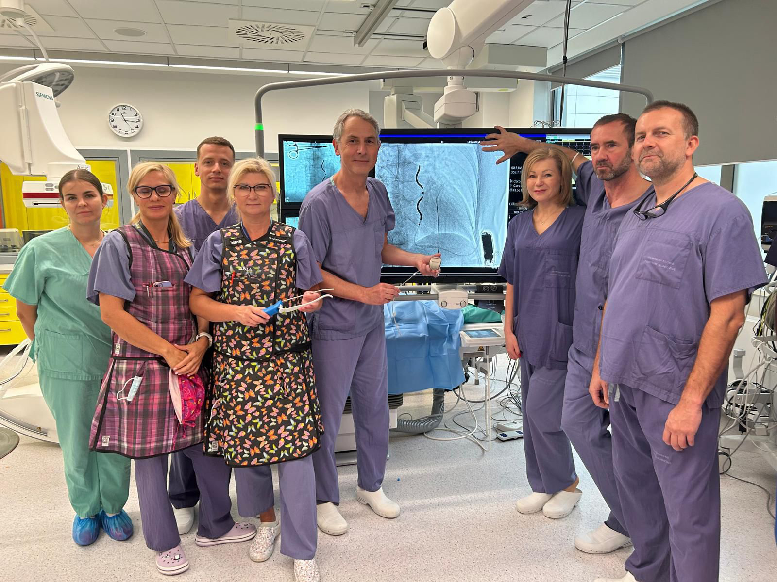 Zabieg przeprowadzony był w Pracowni Elektrofizjologii i Elektroterapii Serca przez zespół kierowany przez dr. hab. n. med. Macieja Kempę. W skład zespołu wszedł też dr n. med. Szymon Budrejko z Kliniki Kardiologii i Elektroterapii Serca oraz dr n. med. Magdalena Kołaczkowska z Kliniki Kardiochirurgii. Nieocenionym wsparciem była instrumentariuszka Joanna Prządka oraz technik elektroradiologii mgr Dorota Mudzińska. Znieczulenie ogólne prowadzone było przez lek. Jana Stefaniaka. Nad prawidłowym i bezpiecznym wykonaniem zabiegu czuwał zaproszony gość prof. dr hab. n. med. Maciej Sterliński, międzynarodowy ekspert w stosowaniu tej metody leczenia.