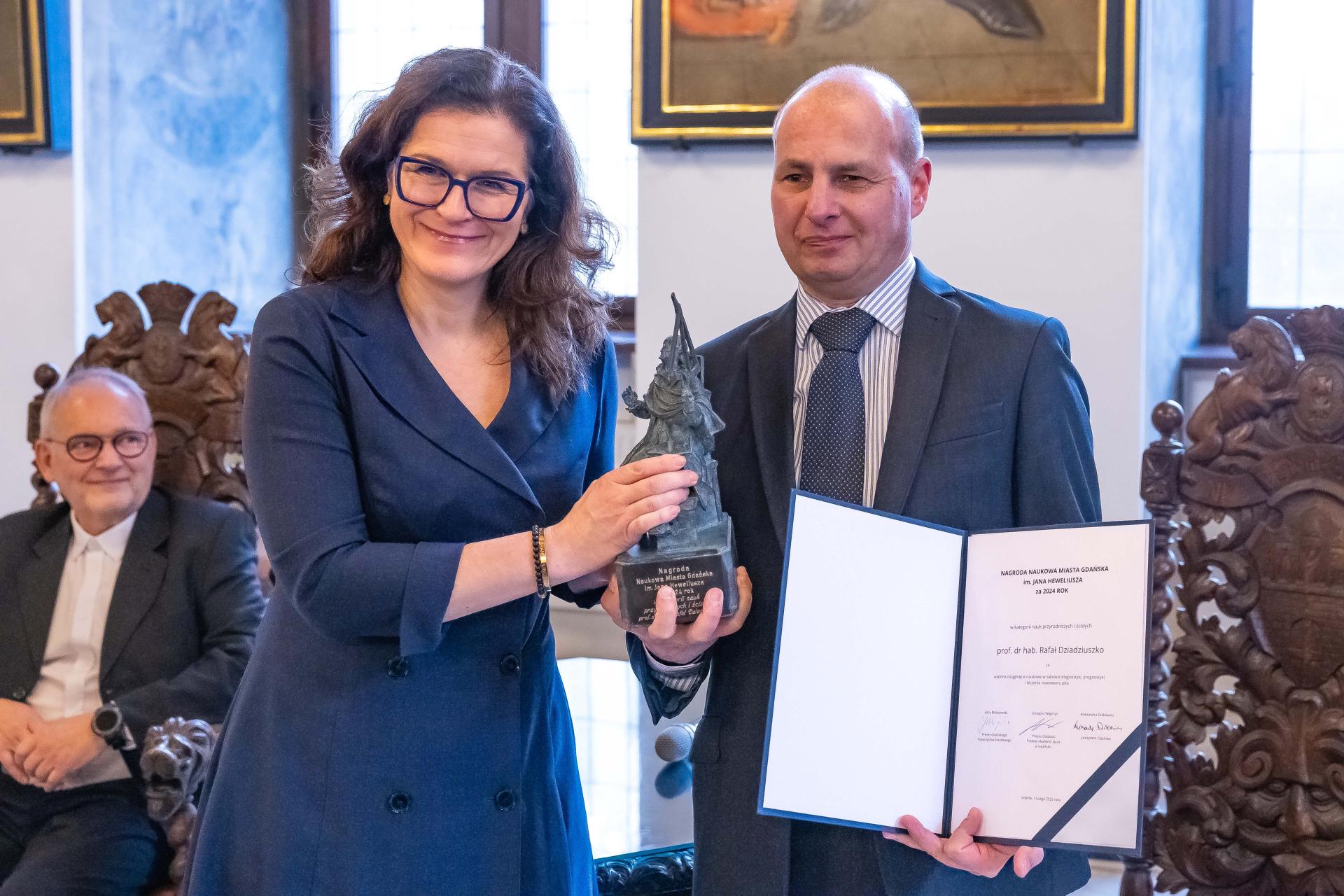 Nagrody Naukowe Miasta Gdańska im. Jana Heweliusza wręczono już po raz 37. Tym razem wyróżnienie odebrał prof. dr hab. Rafał Dziadziuszko, ordynator Kliniki Onkologii i Radioterapii UCK - za wybitne osiągnięcia naukowe w zakresie diagnostyki, prognostyki i leczenia nowotworu płuc.