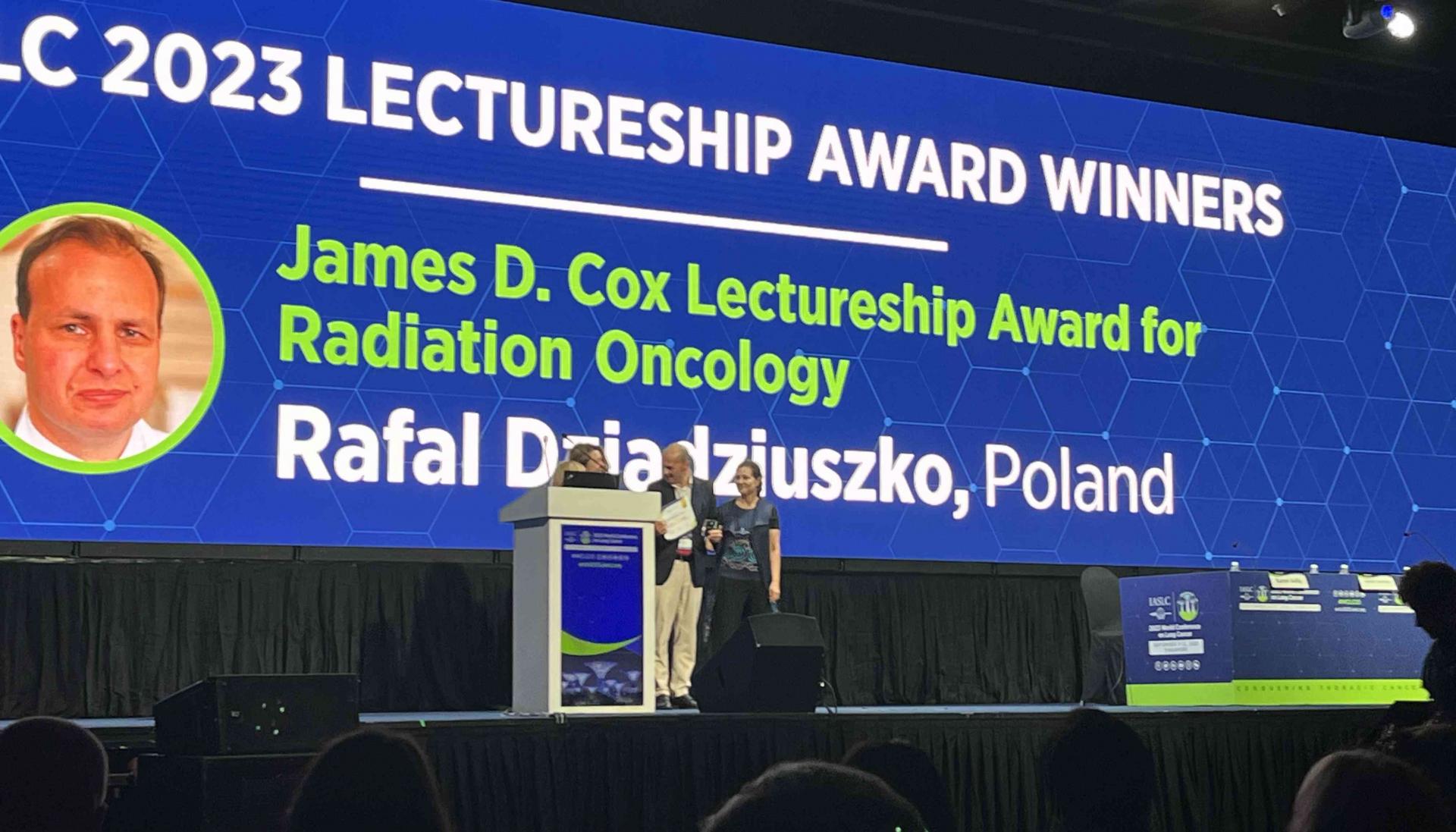 Prof. Rafał Dziadziuszko, kierownik Kliniki Onkologii i Radioterapii Uniwersyteckiego Centrum Klinicznego,otrzymał prestiżową nagrodę im. Jamesa D. Coxa za zasługi w dziedzinie radioterapii raka płuca. Międzynarodowe jury, pod przewodnictwem prof. Andrei Bezjak (Princes Maragaret Cancer Center, Toronto, Kanada), wyróżniło profesora za udział w rozwoju radioterapii, szczególne osiągnięcia w badaniach klinicznych nad rakiem płuca o zasięgu globalnym oraz udział w kształceniu w przed- i po dyplomowym w Polsce i Europie.