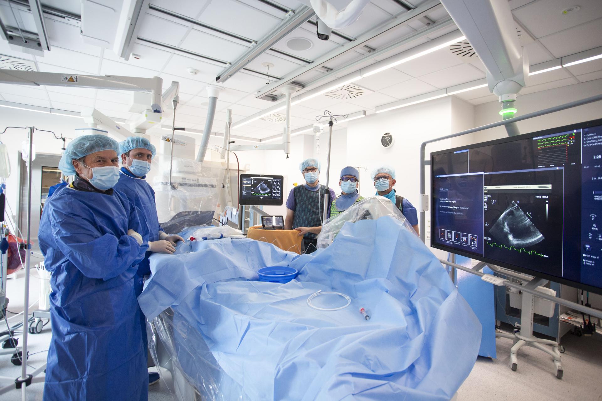 W Uniwersyteckim Centrum Klinicznym zabiegi naprawy zastawki mitralnej metodą „brzeg do brzegu” wykonywane są już od 6 lat. To procedura bardzo skomplikowana, trudna do przeprowadzenia. Wymaga dobrego przygotowania całego zespołu, który został zbudowany w taki sposób, by zapewnić ciągłość działania bez względu na sytuacje losowe czy okresy urlopowe. Zabiegi wykonują wspólnie kardiolodzy interwencyjni, kardiolodzy zajmujący się obrazowaniem, anestezjolodzy. W skład zespołu wchodzą lekarze, pielęgniarki i technicy Pracowni Hemodynamicznej: dr Dariusz Ciećwierz, dr Radosław Targoński, dr Michał Chmielecki oraz lekarze Oddziału Chorób Strukturalnych Serca: prof. Marcin Fijałkowski, dr Rafał Gałąska, dr Izabela Pisowodzka i dr hab. Agnieszka Mickiewicz