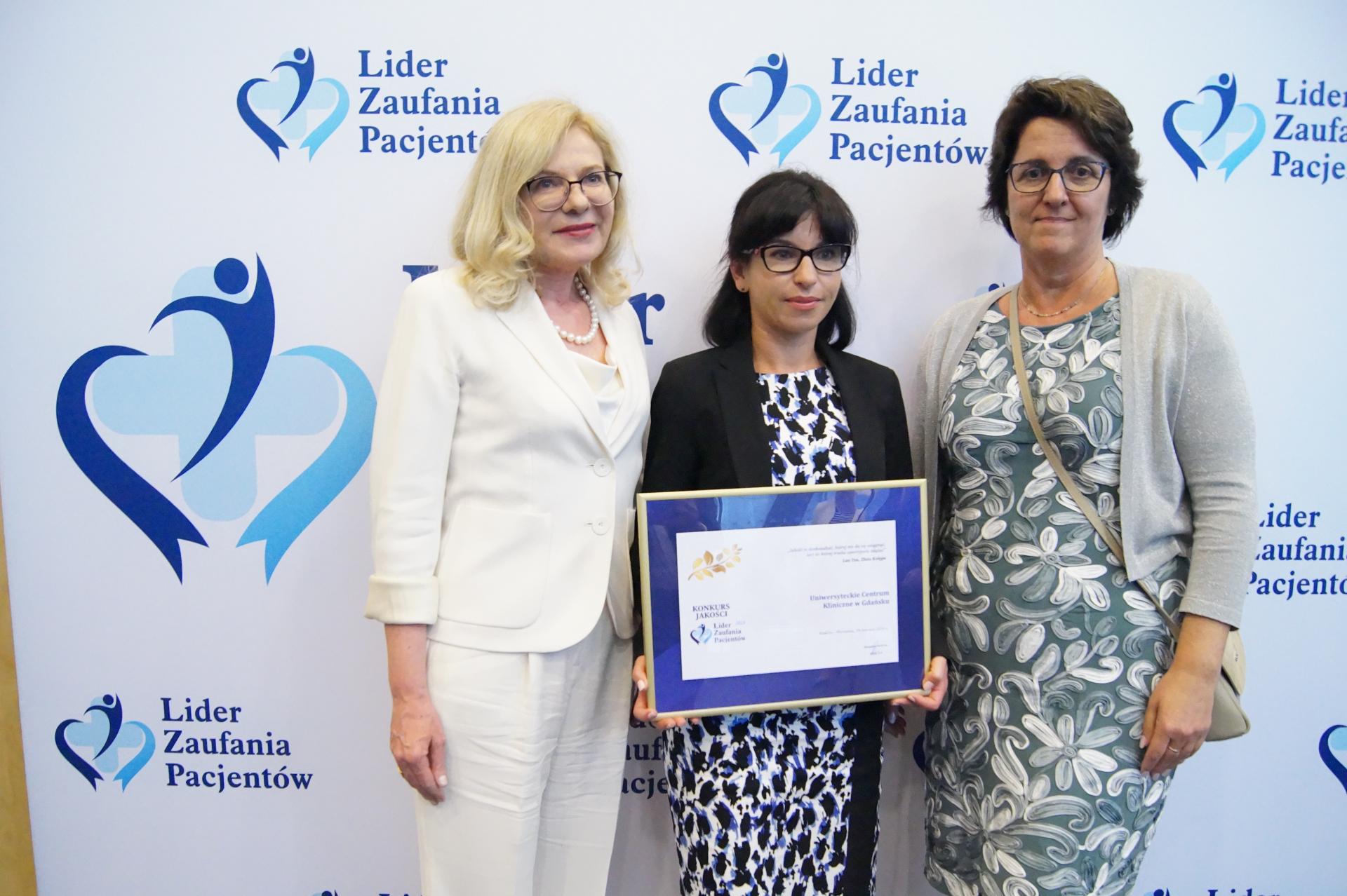 ekspertów w kategorii „Jakość”. Nagrody odebrały: prof. Edyta Szurowska, prorektor ds. klinicznych GUMed, Anna Lignowska, z-ca dyrektora naczelnego UCK ds. pielęgniarstwa oraz Joanna Fajks, kierownik Działu Koordynacji Obsługi Pacjenta