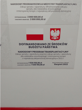 " Zakup sprzętu i aparatury: sfinansowanie zakupu sprzętu dla Oddziałów Anestezjologii i Intensywnej Terapii z największą aktywnością donacyjną w latach 2011-2022".