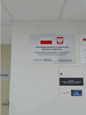 W ramach dofinansowania przez Ministerstwo Zdrowia zakupiono następujący sprzęt: Mammograf cyfrowy