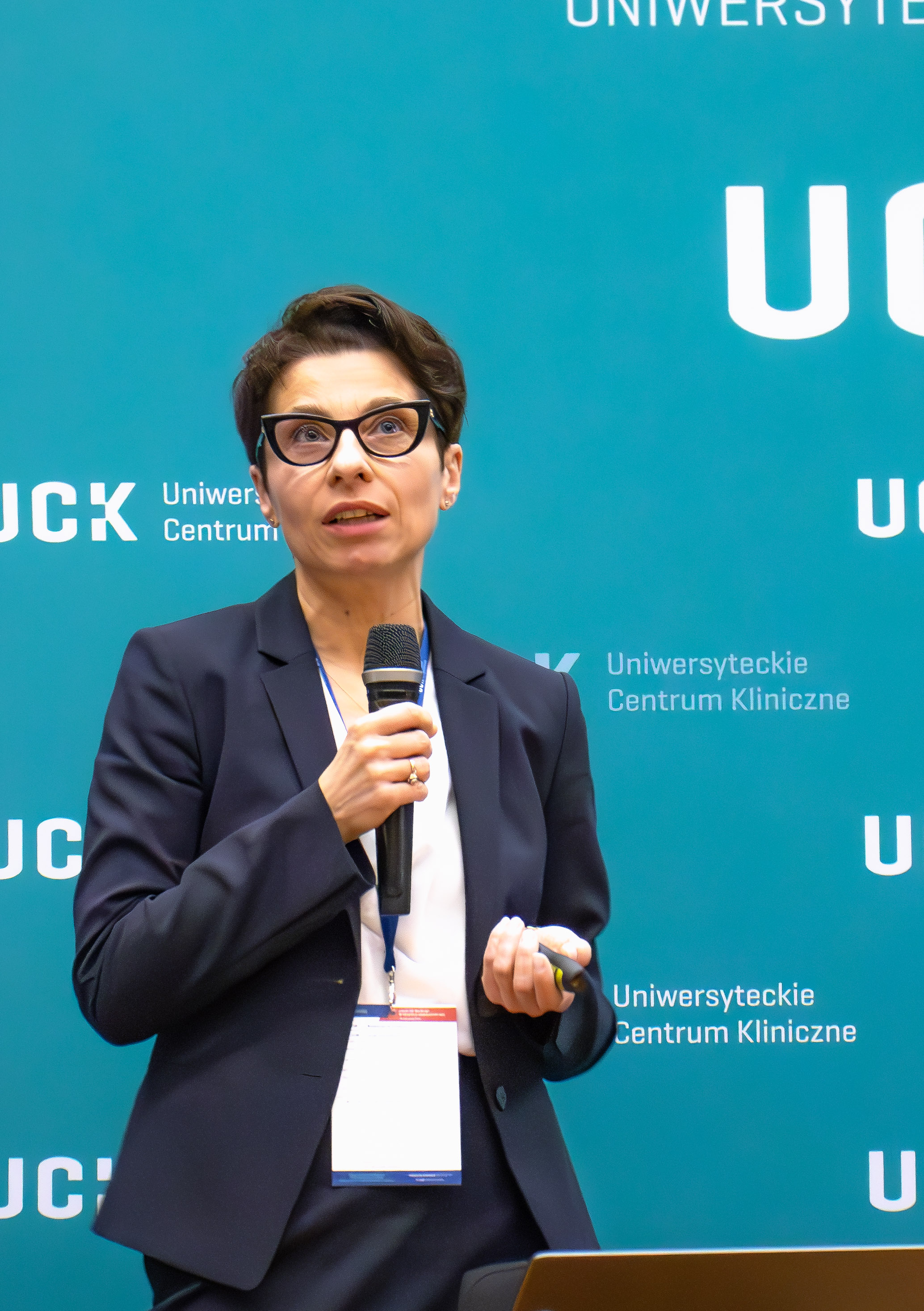 Pierwszą sesję wykładową zamknęła prof. Katarzyna Sikorska, która przedstawiła prelekcję dotyczącą żelaza, w której trakcie wnikliwie omówiła diagnostykę różnicową hemochromatozy i pokrewnych zaburzeń metabolizmu żelaza. Profesor Sikorska wyraźnie zaakcentowała rolę wczesnych badań przesiewowych i odpowiedniego różnicowania stanów przeładowania żelazem, które nierzadko są błędnie rozpoznawane lub niedostatecznie wcześnie wykrywane w praktyce ambulatoryjnej.