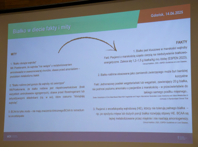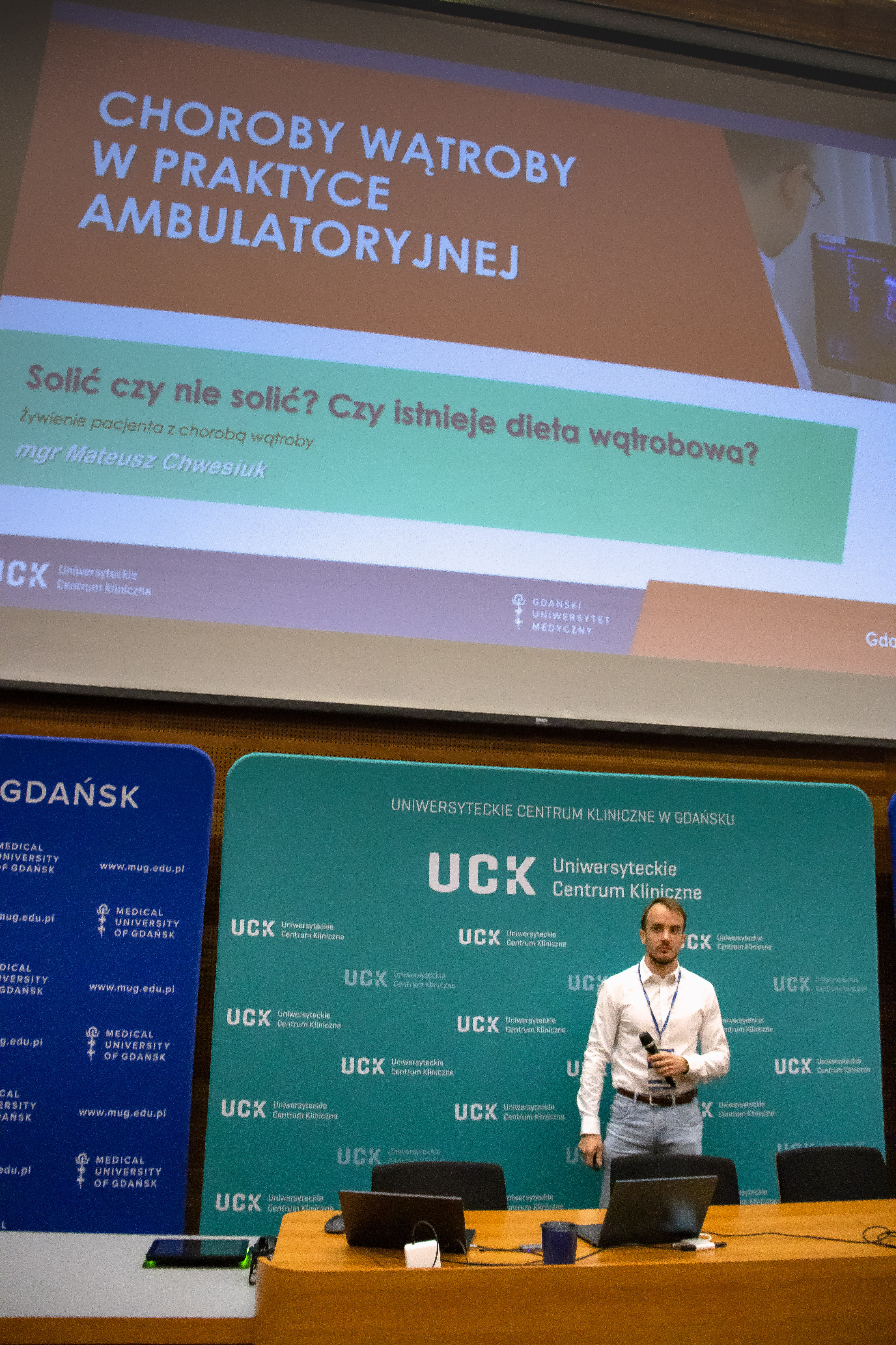 Kwestie żywienia pacjentów z chorobami wątroby były przedmiotem szczególnego zainteresowania uczestników. Mgr Mateusz Chwesiuk w swojej prelekcji przełamał wiele mitów dietetycznych, zwracając uwagę na indywidualizację zaleceń oraz na fakt, że brak jednej uniwersalnej „diety wątrobowej” wymaga od lekarzy szerszej wiedzy i współpracy z dietetykami. Podał również konkretne zalecenia, które lekarze i dietetycy mogą wdrażać w codziennej pracy z pacjentem.