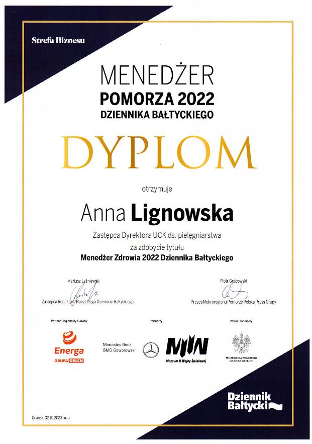 2 października 2023 r. wręczono nagrody w konkursie Menedżer Pomorza 2022, którego organizatorem jest Dziennik Bałtycki. Tytuł Menedżera Zdrowia 2022 przyznano Annie Lignowskiej, z-cy dyrektora naczelnego UCK ds. pielęgniarstwa.