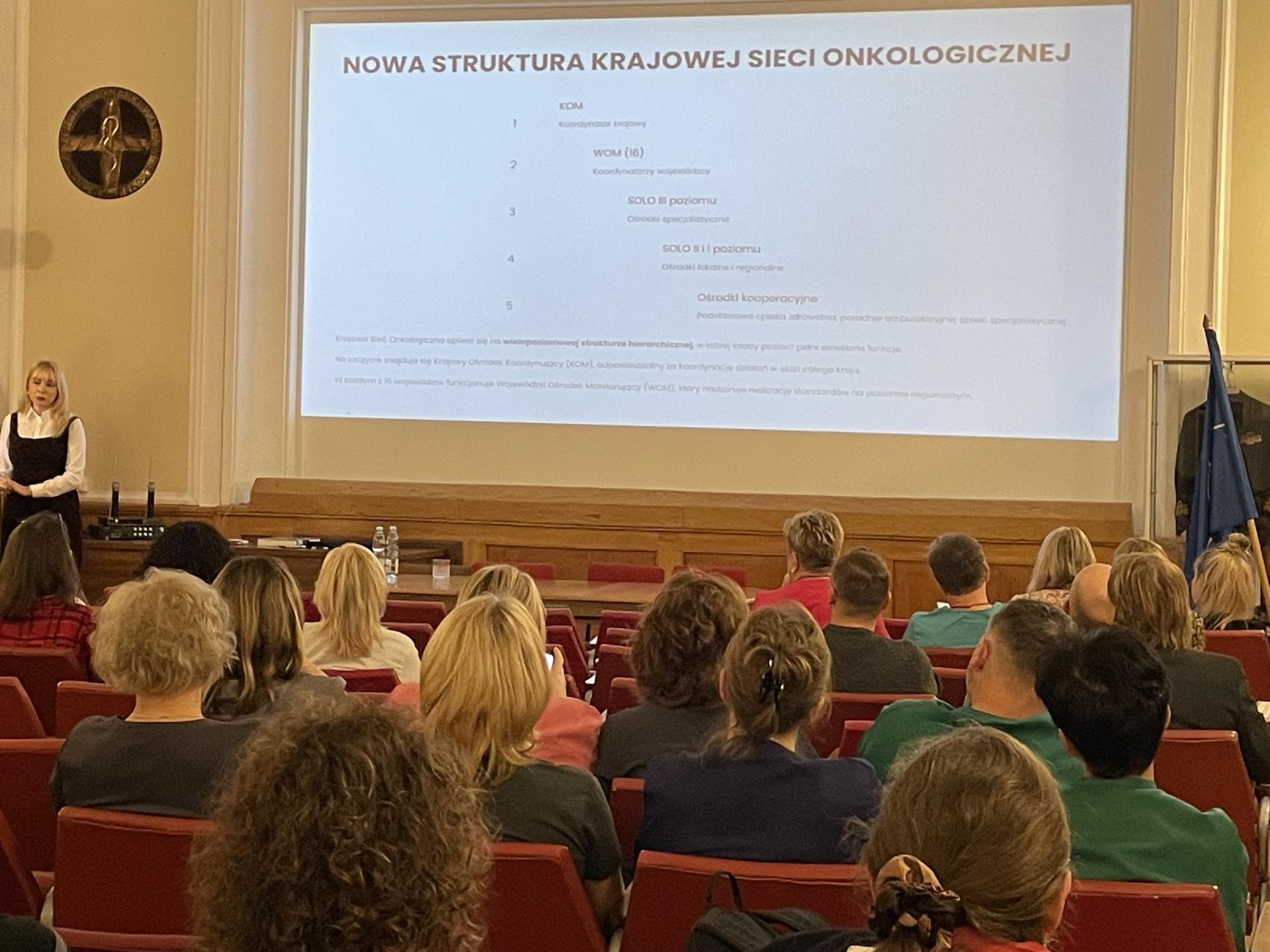 Wydarzenie stanowiło istotny element działań mających na celu podnoszenie jakości i spójności opieki onkologicznej oraz wzmacnianie współpracy pomiędzy ośrodkami realizującymi świadczenia w ramach sieci. W spotkaniu uczestniczyły 44 osoby w tym lekarze, pielęgniarki, koordynatorzy DiLO, sekretarki medyczne oraz pracownicy administracyjni szpitala. Szkolenie poprowadziła Marta Bielińska – Edukator Krajowej Sieci Onkologicznej, uczestniczyła w nim również Ewa Mazur – Koordynator Rozliczenia Opieki Kompleksowej UCK.
