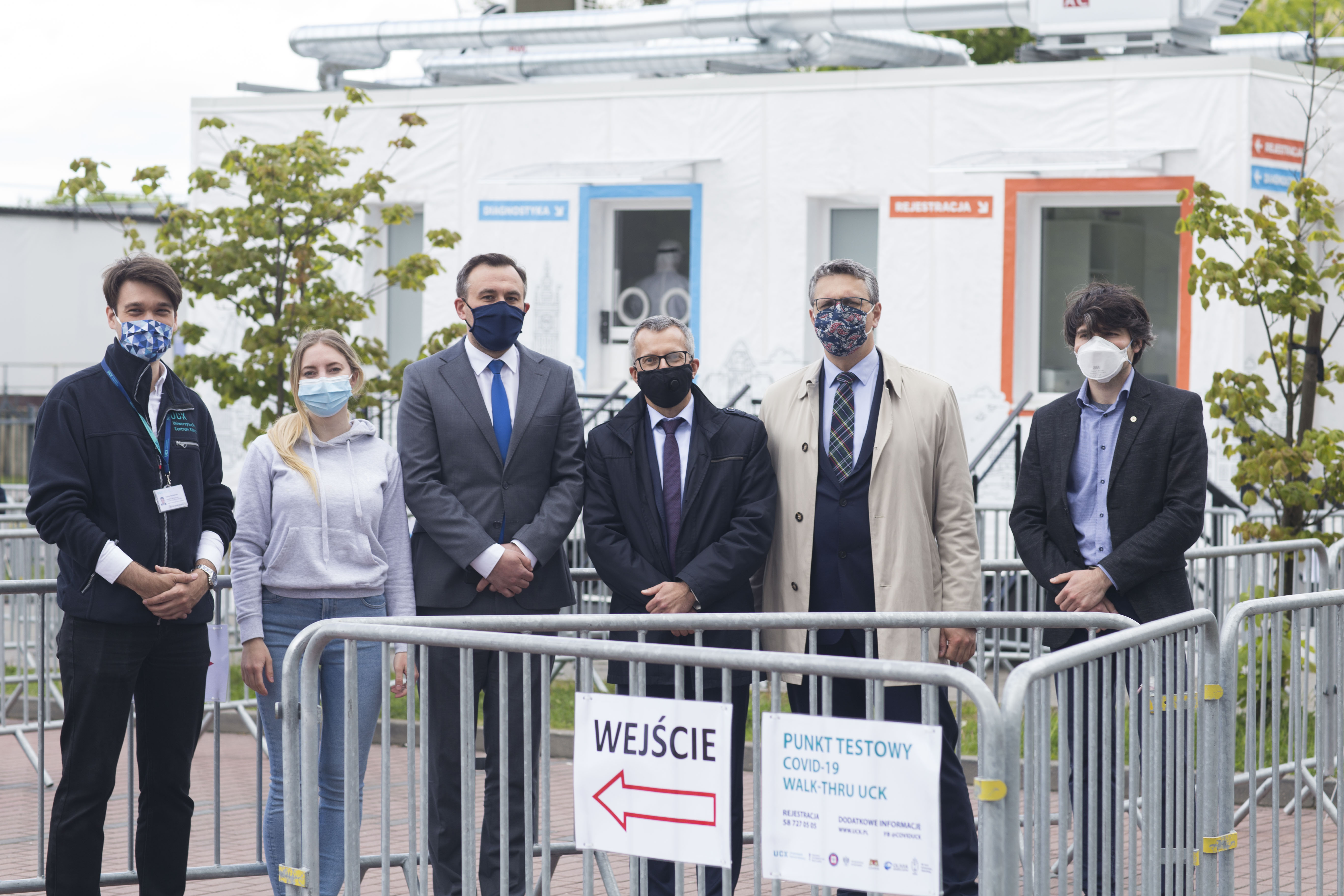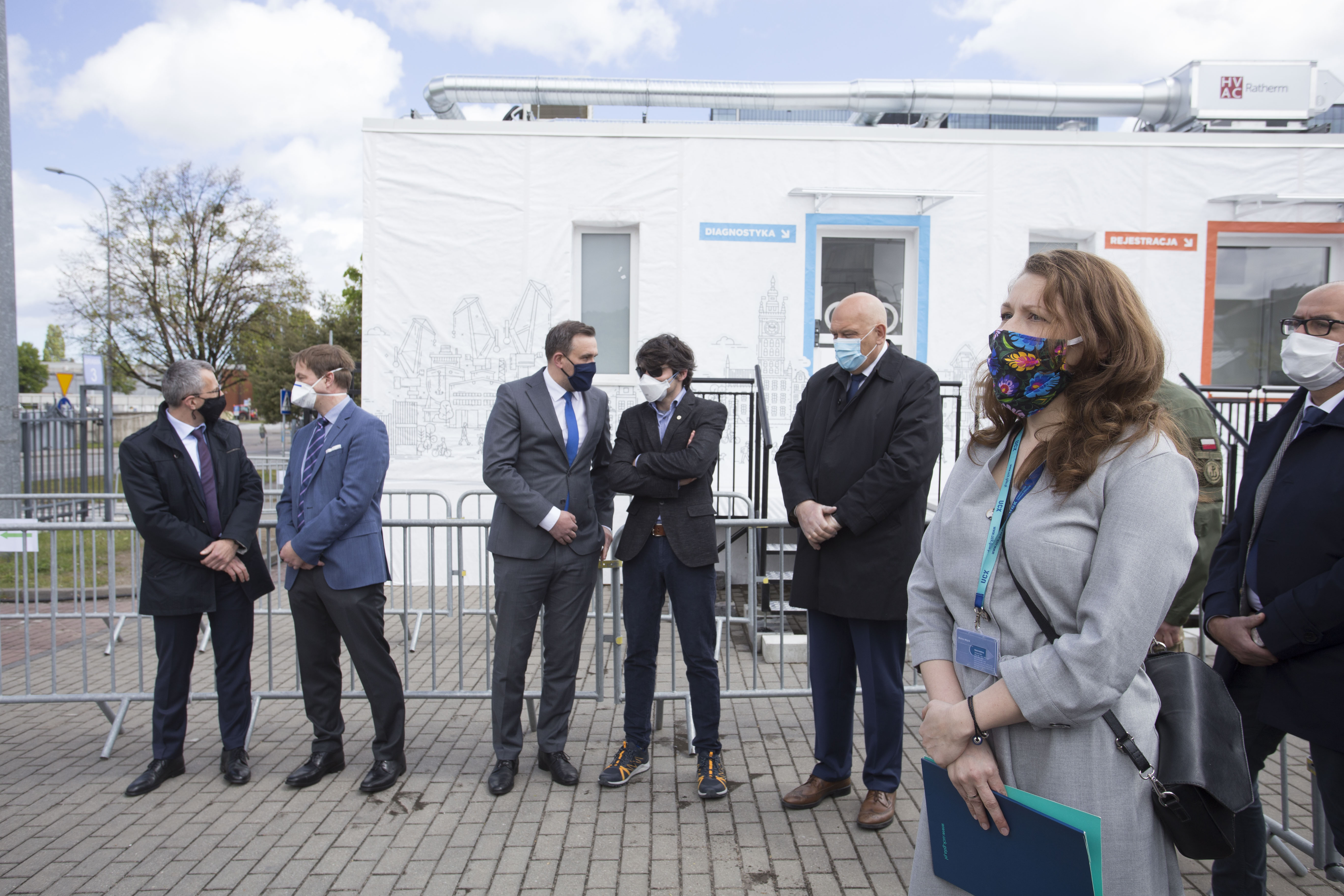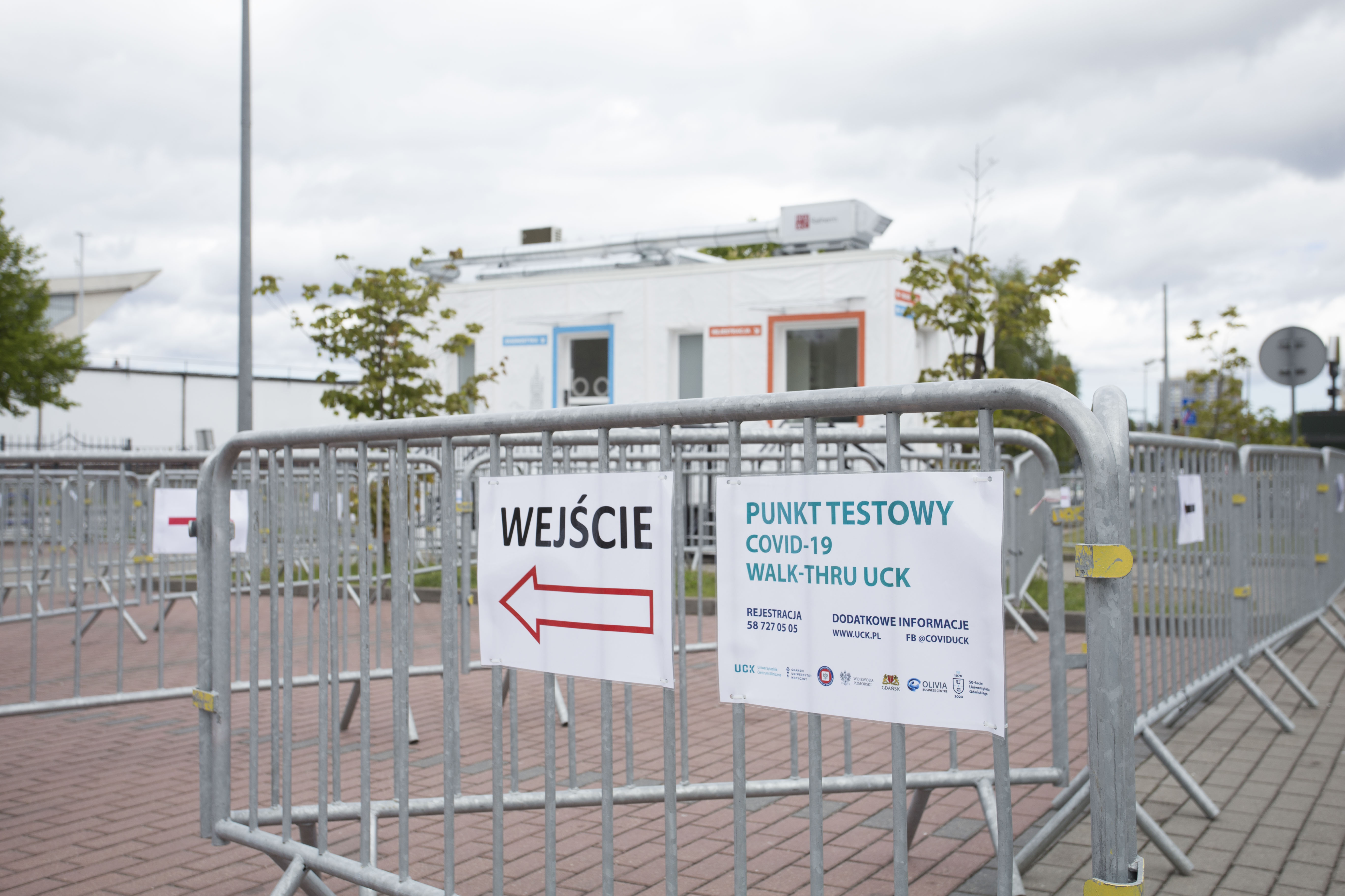 Dzięki mobilnemu centrum testowemu bezpłatne badanie na koronawirusa można wykonać w formule walk-thru, przychodząc na piechotę czy też korzystając z innych niż samochód środków transportu. To pierwszy w Polsce tego typu punkt przygotowany do powszechnego pobierania wymazów do testów w kierunku Covid-19. Moduł został sfinansowany przez Olivię Business Centre i przekazany Uniwersyteckiemu Centrum Klinicznemu. Wojewoda Pomorski Dariusz Drelich sfinansował niezbędny sprzęt oraz środki ochrony osobistej. Uruchomienie punktu było możliwe dzięki wsparciu Wojewódzkiej Stacji Sanitarno-Epidemiologicznej, Gdańskiego Uniwersytetu Medycznego, miasta Gdańsk oraz za zgodą Rektora Uniwersytetu Gdańskiego na terenie UG, obok głównej arterii komunikacyjnej Gdańska.