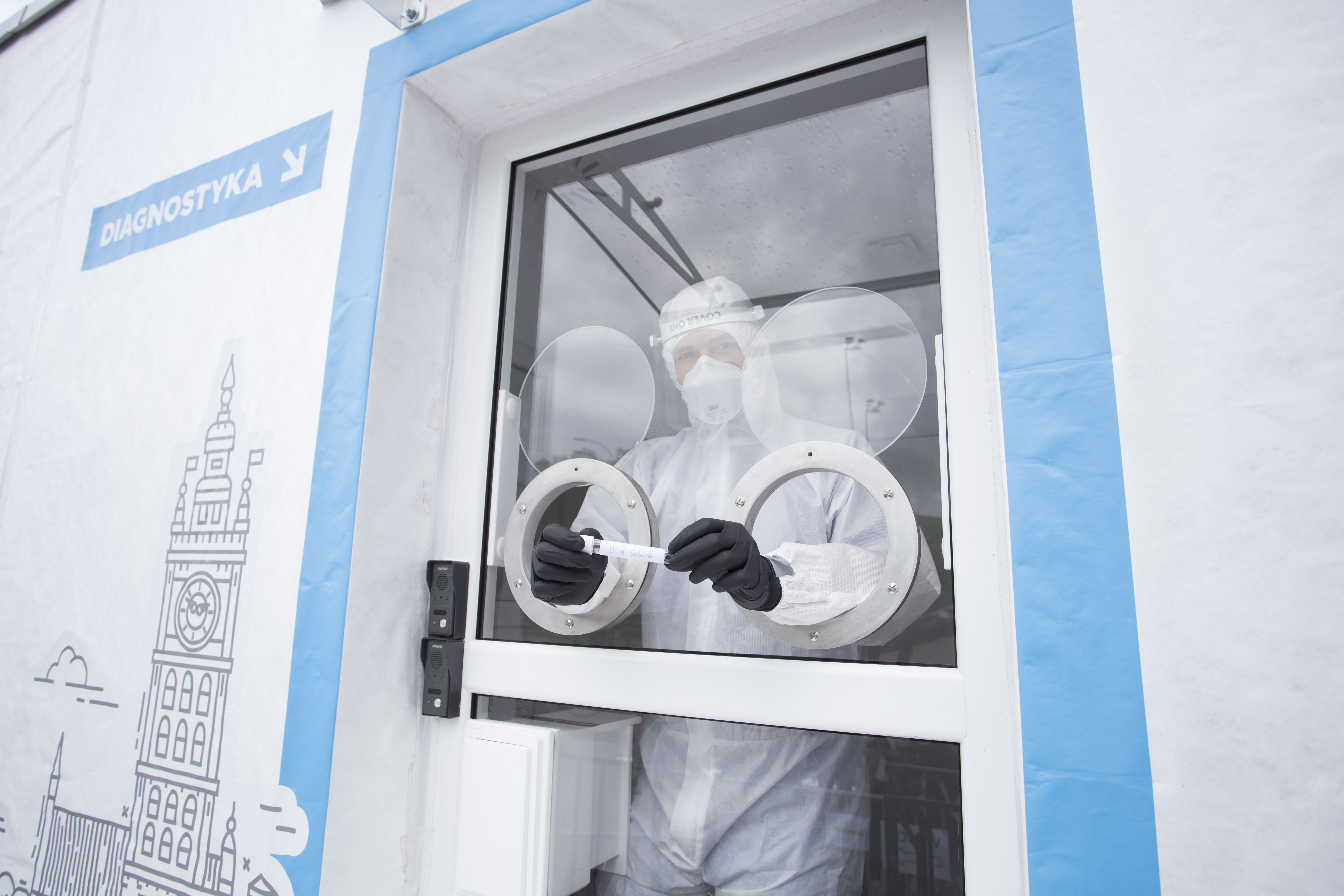 Koronawirus: pierwsze w Polsce mobilne centrum testowe walk-thru