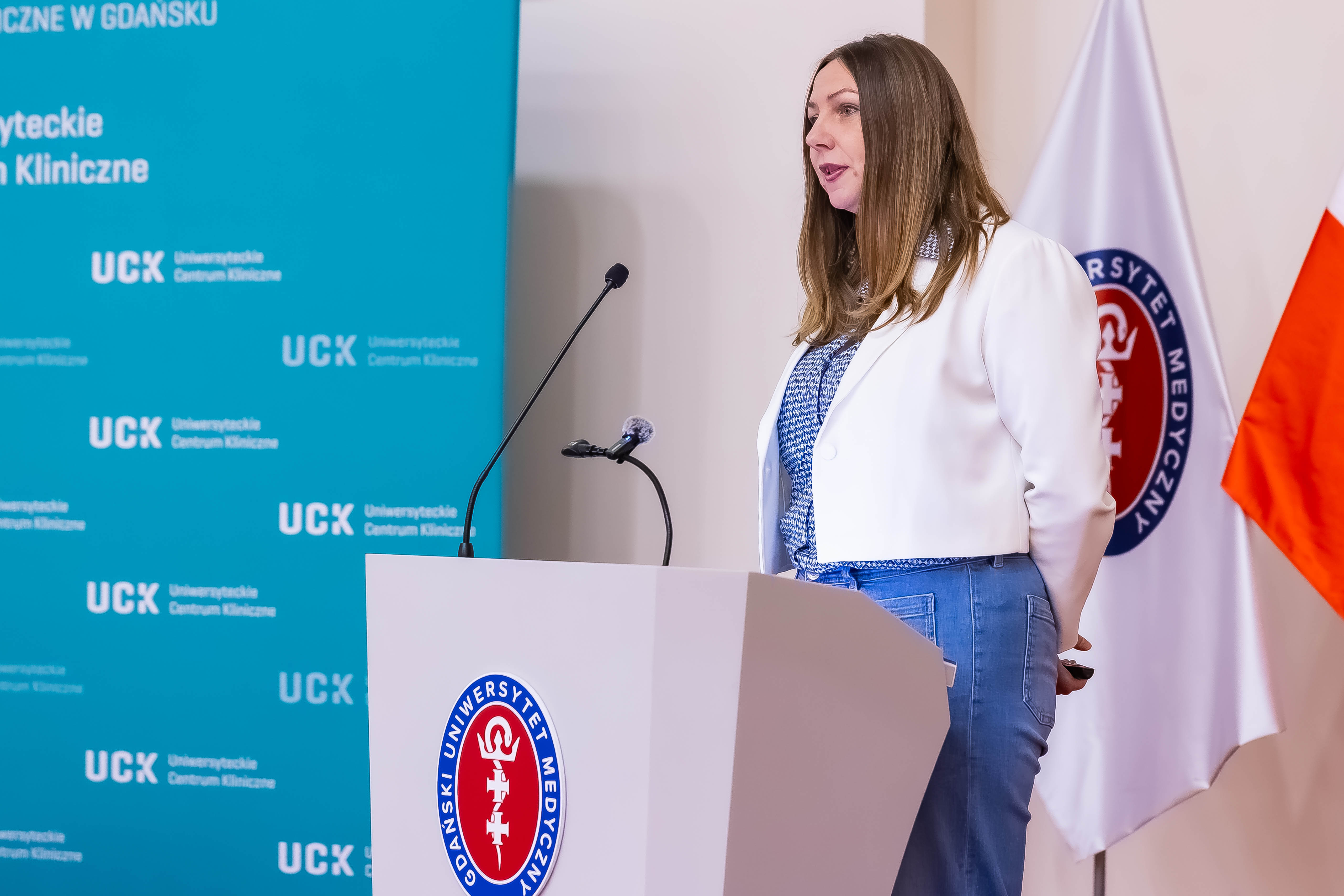 Prelekcje nt. aktualnej oferty technologicznej GUMed oraz o innowacyjnych projektach, które realizuje Uniwersyteckie Centrum Kliniczne wraz z GUMed, wygłosili dr Katarzyna Waligóra-Borek, p.o. Dyrektora Centrum Transferu Technologii UCK oraz Dariusz Szplit, Kierownik Działu Innowacji, Analityki i Wdrożeń Technologii Medycznych UCK.