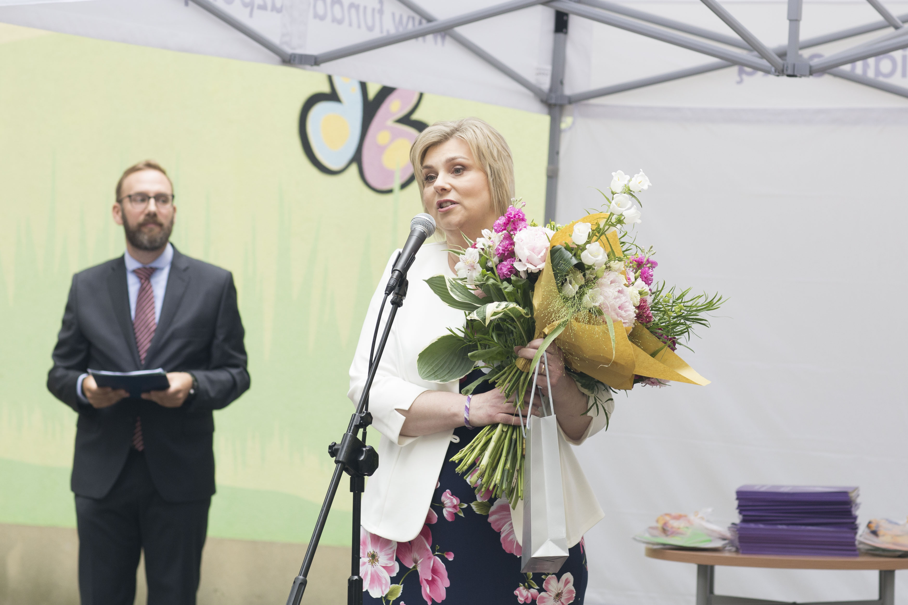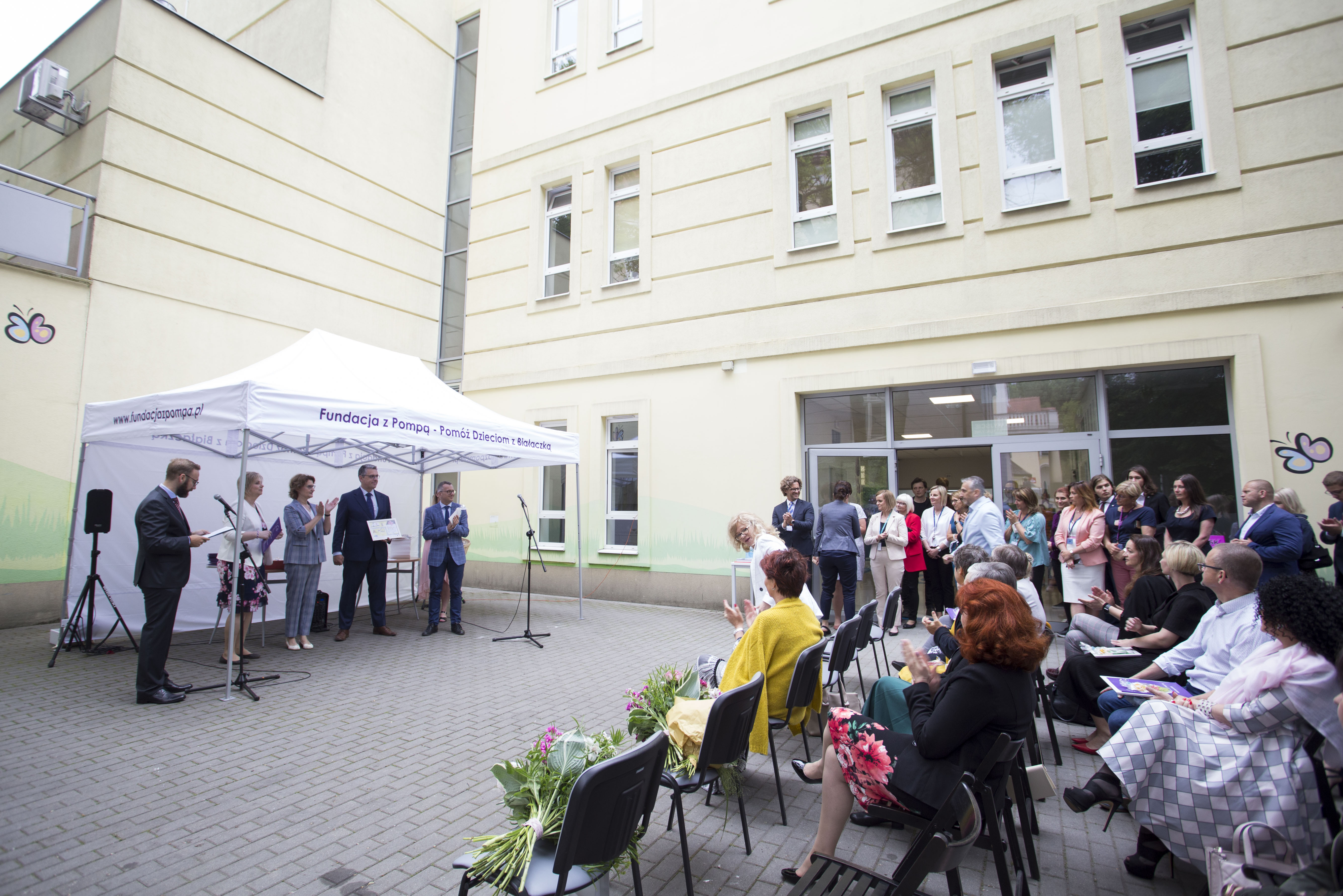 Marta Czyż-Taraszkiewicz, prezes Fundacji z Pompą, która prowadziła zbiórkę na remont budynku, podkreślała, że proces leczenia jest żmudny i trudny nie tylko dla małych pacjentów, ale też dla ich rodziców i całych rodzin. Zaznaczyła, że bardzo ważne w tym wypadku jest zaangażowanie personelu. – Ten proces nie byłby tak sprzyjający, gdyby nie fantastyczni lekarze i fantastyczne pielęgniarki. Wszystkim chciałabym bardzo podziękować – mówiła Marta Czyż-Taraszkiewicz. Zwróciła uwagę, że nie byłoby kliniki, gdyby nie zaangażowanie pewnej osoby. - Nie byłoby nas wszystkich tutaj, gdyby 16 lat temu swojego marzenia o nowoczesnym szpitalu onkologicznym nie spełniła pani prezydentowa Jolanta Kwaśniewska – mówiła prezes Fundacji z Pompą.