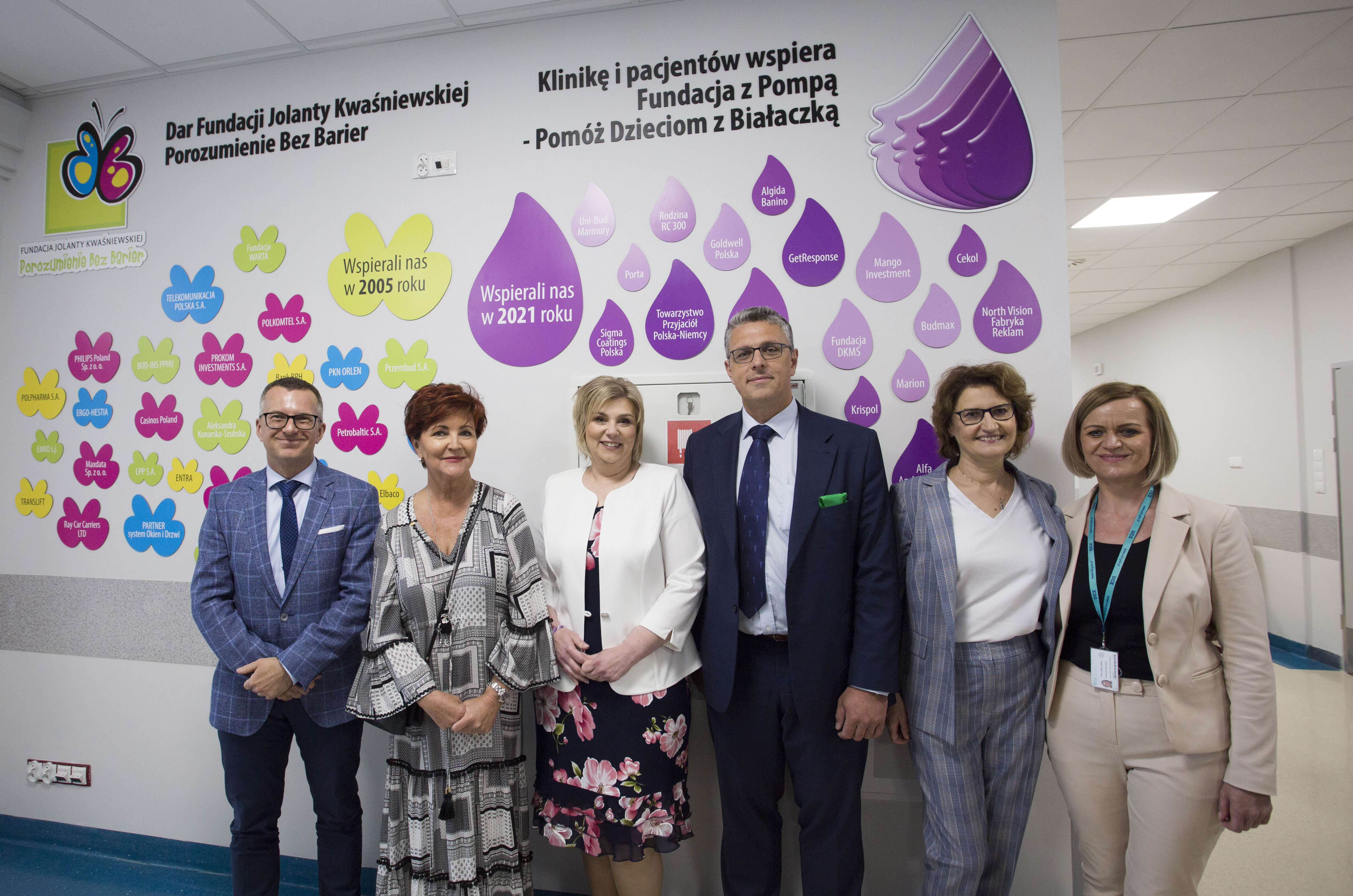 Budowę Kliniki Pediatrii, Hematologii i Onkologii UCK rozpoczęto w 2003 roku, budynek do użytkowania został oddany dwa lata później. Klinika powstała z inicjatywy ówczesnej pierwszej damy i prezes Fundacji „Porozumienie bez barier” – Jolancie Kwaśniewskiej. Jak wspominała podczas uroczystości prezydentowa, udało się wówczas zebrać grono osób, które zdecydowały się wziąć udział w tym trudnym przedsięwzięciu. – Zaczęliśmy długi proces zbierania środków na budowę tego niezwykłego miejsca. Droga powstawania kliniki nie była wcale usłana różami, ale powoli zaczęły wyłaniać się fundamenty. W 2005 roku przyszedł ten moment, kiedy wiedzieliśmy, że będzie szansa na otwarcie kliniki. Zależało nam na tym, aby była to „klinika motylkowa” i na szczęście z pomocą przyszła nam Akademia Sztuk Pięknych - siedemnaścioro studentów stworzyło prace dyplomowe tworząc piękny, bajeczny świat – wspominała Jolanta Kwaśniewska. - Było mi przykro usłyszeć, że po 16 latach, ze względu na zalania i problemy techniczne trzeba było zrobić gigantyczny remont. W tym momencie pojawiła się Fundacja z Pompą i genialna Pani Marta oraz wszystkie osoby, które chciały pomóc jej w tym remoncie. Mamy wspaniałą, technicznie wyposażoną klinikę i wszystko to, co powinno znaleźć się w szpitalu nowej generacji – dodawała.