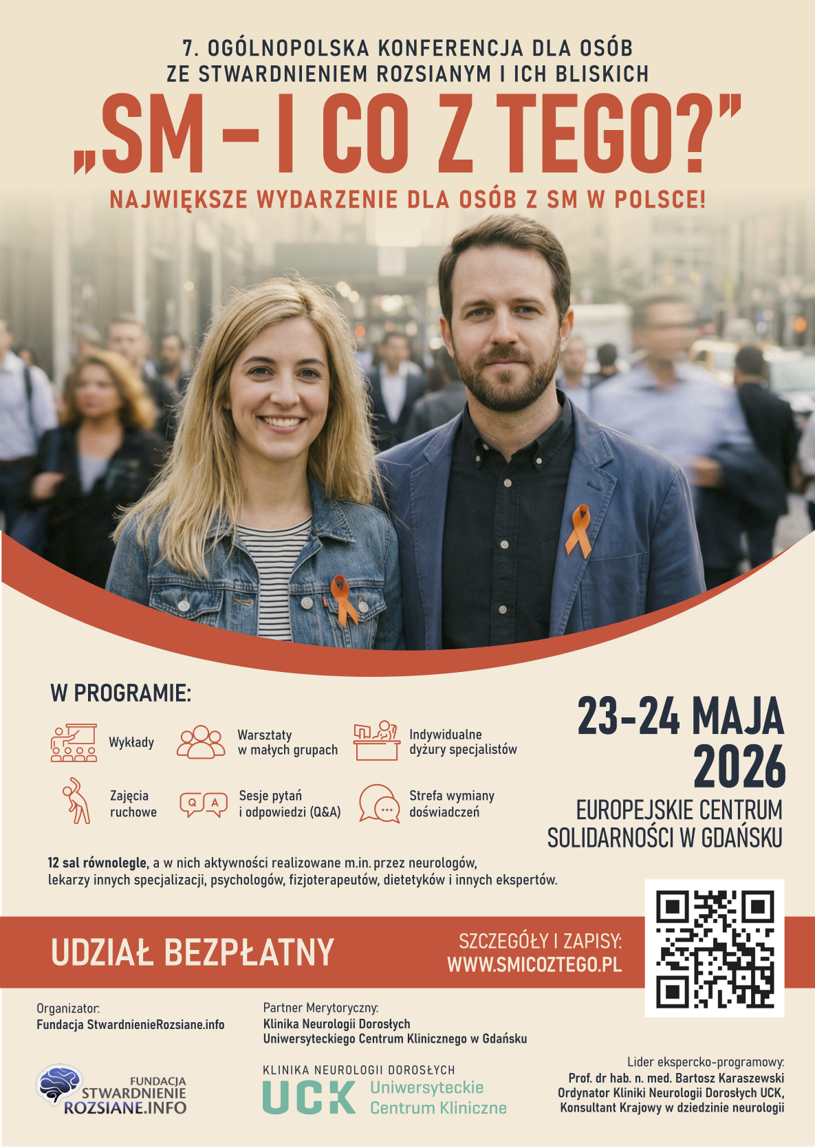 Organizatorem konferencji jest Fundacja StwardnienieRozsiane.info, a partnerem merytorycznym całego cyklu „SM – i co z tego?” od samego początku (2019 r.) jest Klinika Neurologii Dorosłych Uniwersyteckiego Centrum Klinicznego w Gdańsku. Liderem ekspercko-programowego wymiaru konferencji jest prof. Bartosz Karaszewski, krajowy konsultant w dziedzinie neurologii i ordynator Kliniki Neurologii Dorosłych UCK w Gdańsku. Wielu ekspertów, którzy będą uczestniczyć w konferencji, jest na co dzień zawodowo związanych z UCK.